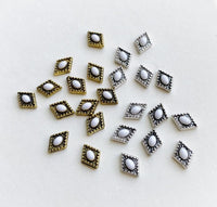 Application: Déposer sur l'ongle un peu de résine médium à l'endroit ciblé. À l'aide d'un embout de cire, prendre le bijou et le déposer sur la résine. Ne pas catalyser, la résine sèche assez lentement pour vous permettre de placer le bijou, et assez rapidement pour ne pas avoir à catalyser.